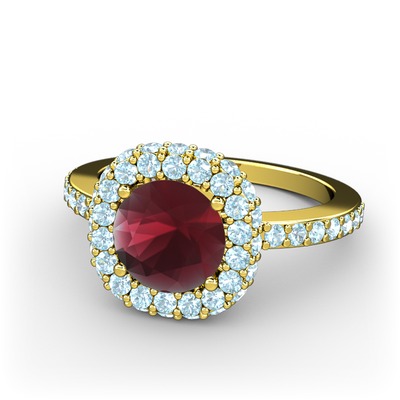 Kök yakut ve akuamarin 925 ayar altın kaplama gümüş yüzük