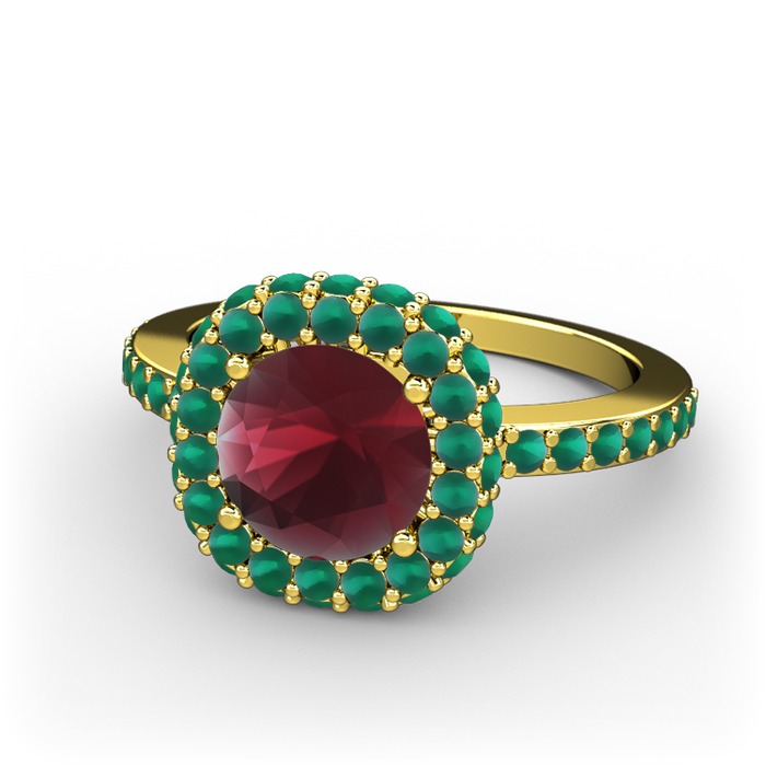 Kök yakut ve kök zümrüt 18 ayar altın yüzük