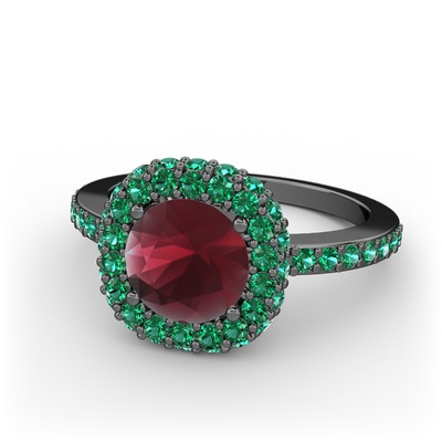 Kök yakut ve yeşil kuvars 925 ayar siyah rodyum kaplama gümüş yüzük