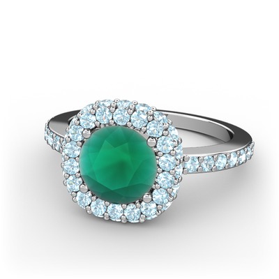 Kök zümrüt ve akuamarin 8 ayar beyaz altın yüzük