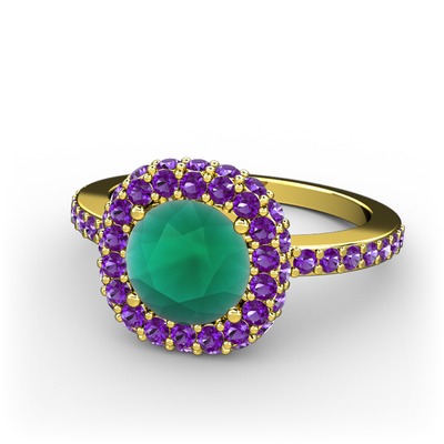Kök zümrüt ve ametist 925 ayar altın kaplama gümüş yüzük