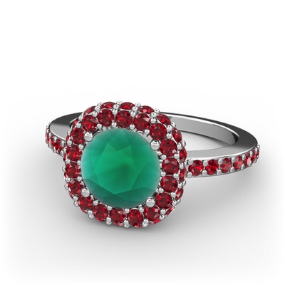 Kök zümrüt ve garnet 8 ayar beyaz altın yüzük