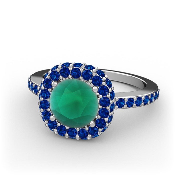 Kök zümrüt ve lab safir 8 ayar beyaz altın yüzük