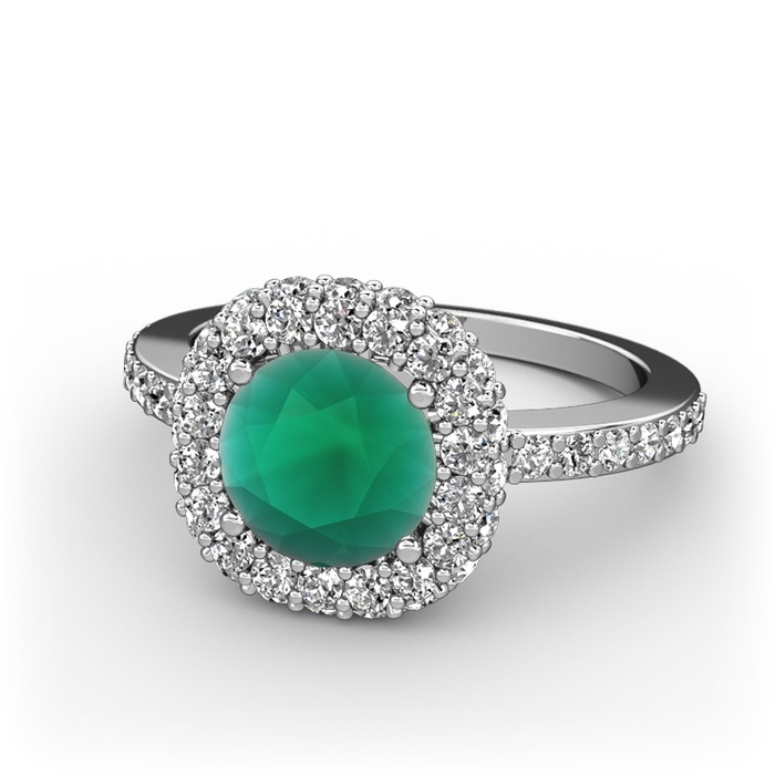 Kök zümrüt ve pırlanta 14 ayar beyaz altın yüzük (1.04 karat)