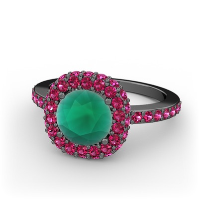 Kök zümrüt ve rodolit garnet 925 ayar siyah rodyum kaplama gümüş yüzük