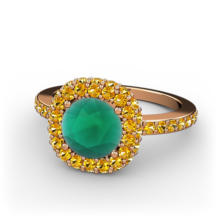 Kök zümrüt ve sitrin 8 ayar rose altın yüzük