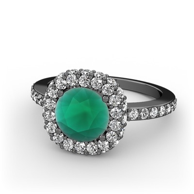 Kök zümrüt ve swarovski 925 ayar siyah rodyum kaplama gümüş yüzük