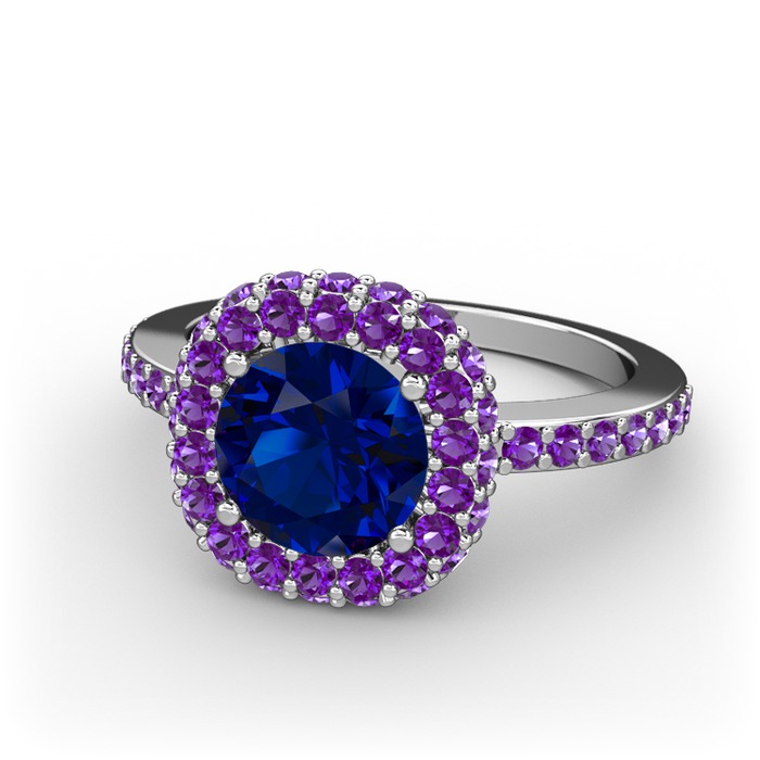 Lab safir ve ametist 8 ayar beyaz altın yüzük