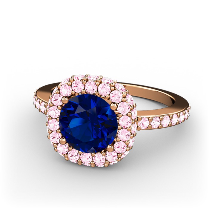 Lab safir ve pembe kuvars 8 ayar rose altın yüzük