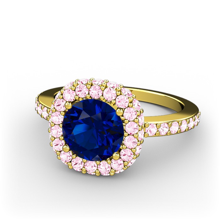 Lab safir ve pembe kuvars 925 ayar altın kaplama gümüş yüzük