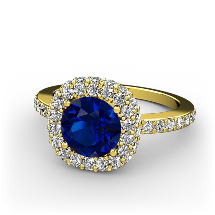 Lab safir ve pırlanta 925 ayar altın kaplama gümüş yüzük (1.04 karat)