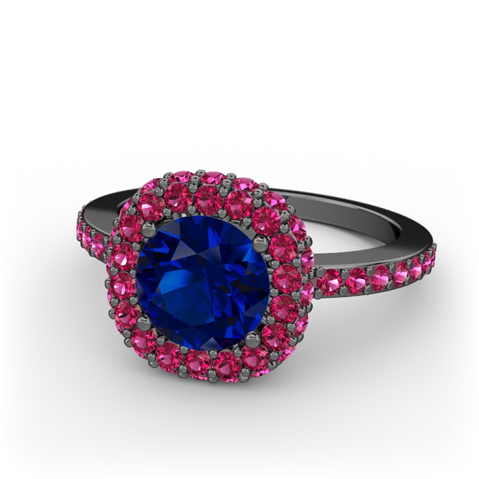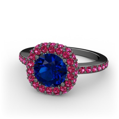 Lab safir ve rodolit garnet 925 ayar siyah rodyum kaplama gümüş yüzük