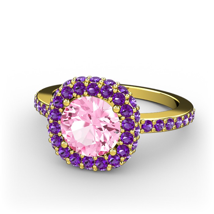 Pembe kuvars ve ametist 18 ayar altın yüzük
