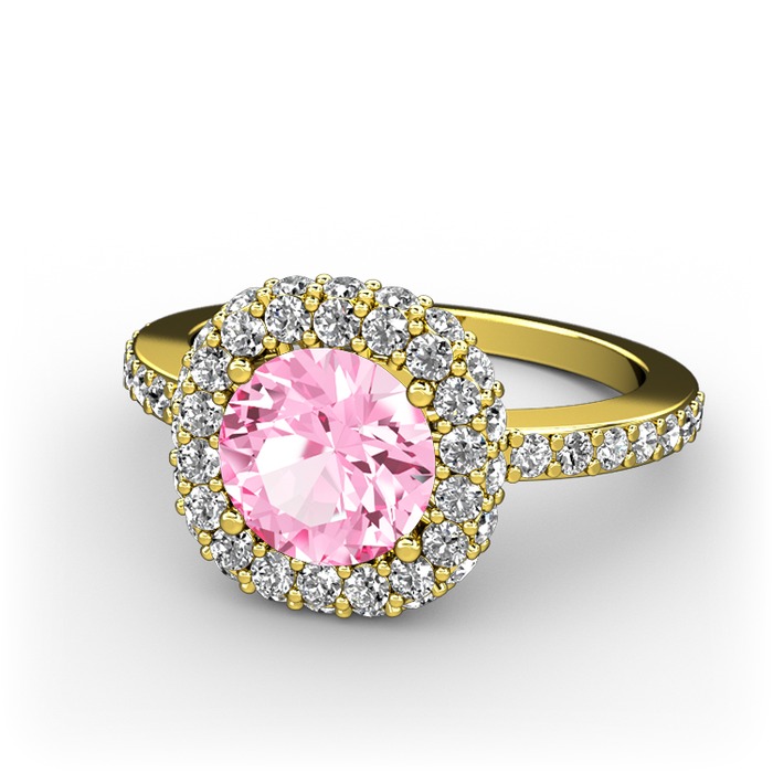 Pembe kuvars ve beyaz zirkon 925 ayar altın kaplama gümüş yüzük