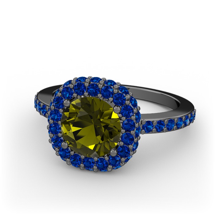 Peridot ve lab safir 925 ayar siyah rodyum kaplama gümüş yüzük
