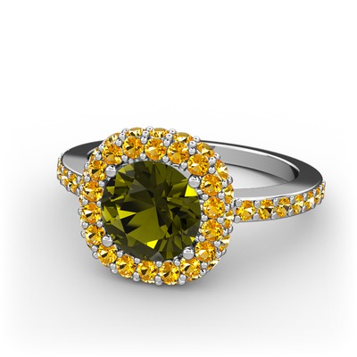 Peridot ve sitrin 14 ayar beyaz altın yüzük