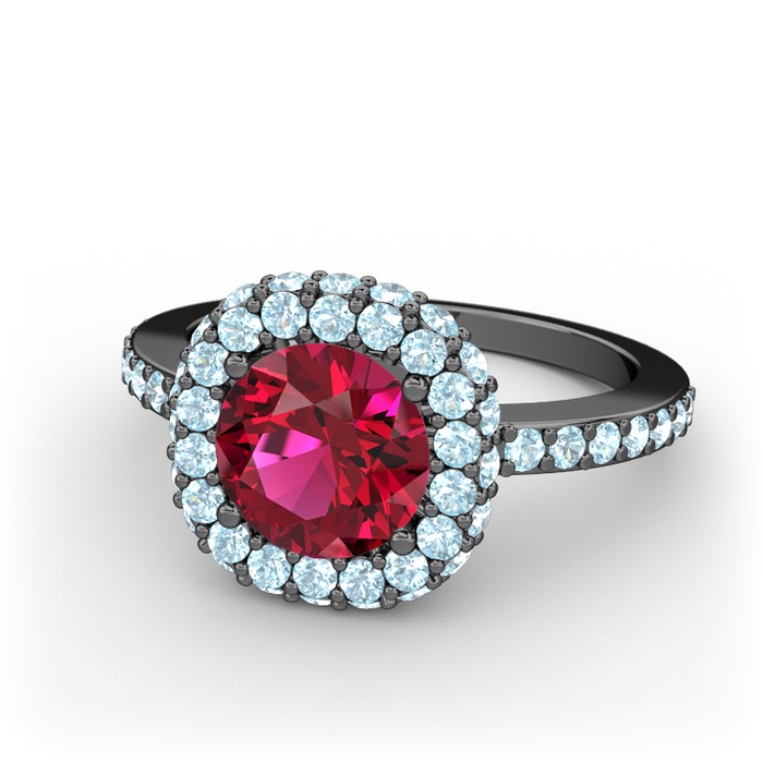 Rodolit garnet ve akuamarin 925 ayar siyah rodyum kaplama gümüş yüzük