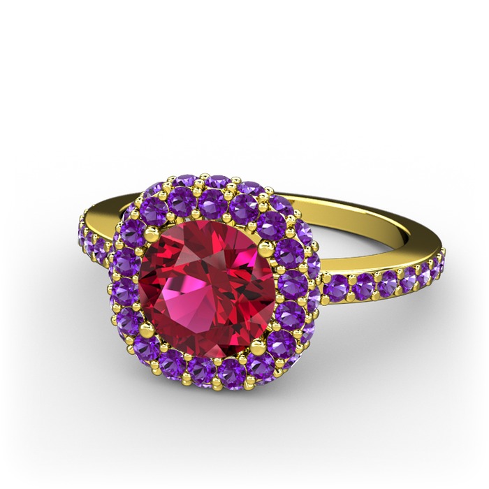 Rodolit garnet ve ametist 18 ayar altın yüzük