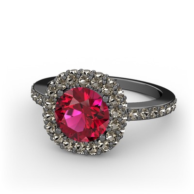 Rodolit garnet ve dumanlı kuvars 925 ayar siyah rodyum kaplama gümüş yüzük
