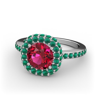 Rodolit garnet ve kök zümrüt 18 ayar beyaz altın yüzük