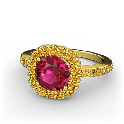 Rodolit garnet ve sitrin 8 ayar altın yüzük