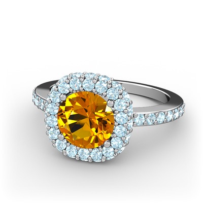 Sitrin ve akuamarin 18 ayar beyaz altın yüzük