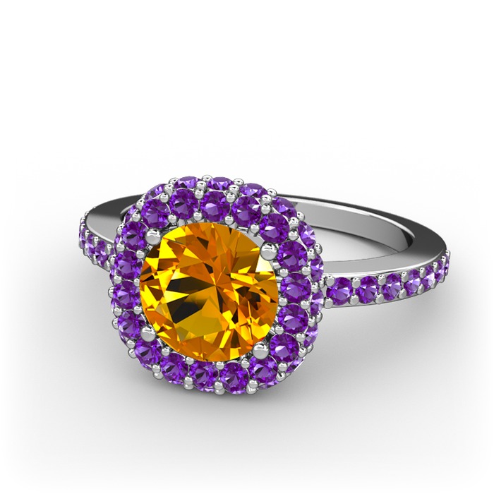 Sitrin ve ametist 18 ayar beyaz altın yüzük