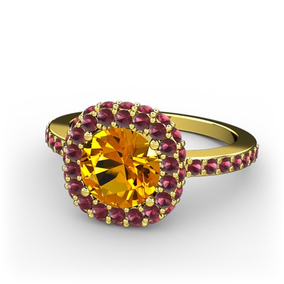 Sitrin ve kök yakut 14 ayar altın yüzük