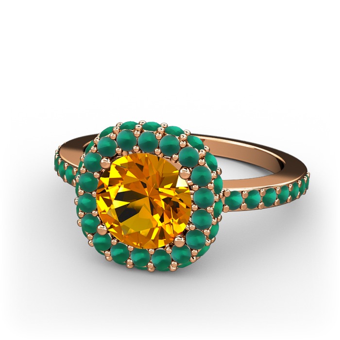 Sitrin ve kök zümrüt 925 ayar rose altın kaplama gümüş yüzük
