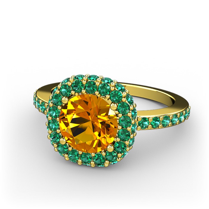Sitrin ve yeşil kuvars 925 ayar altın kaplama gümüş yüzük