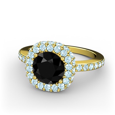 Siyah zirkon ve akuamarin 18 ayar altın yüzük