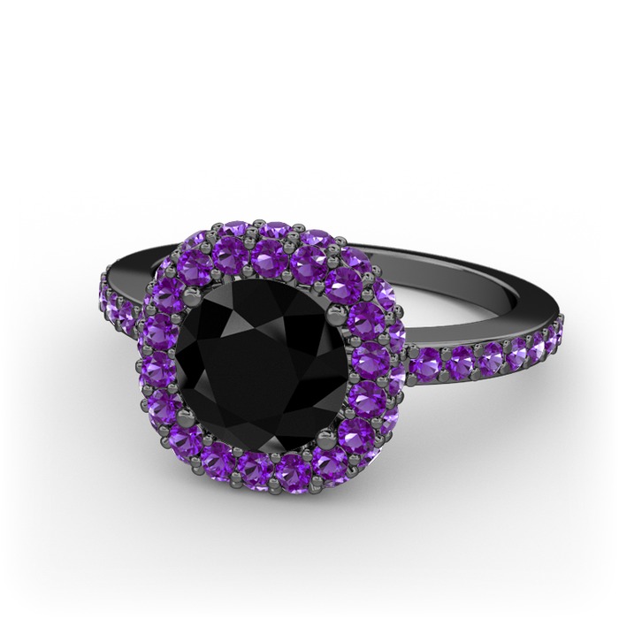 Siyah zirkon ve ametist 925 ayar siyah rodyum kaplama gümüş yüzük