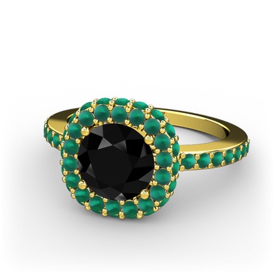 Siyah zirkon ve kök zümrüt 925 ayar altın kaplama gümüş yüzük