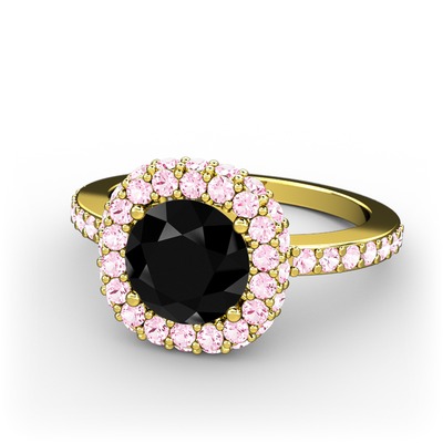 Siyah zirkon ve pembe kuvars 925 ayar altın kaplama gümüş yüzük