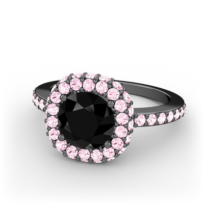 Siyah zirkon ve pembe kuvars 925 ayar siyah rodyum kaplama gümüş yüzük