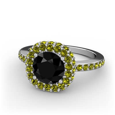 Siyah zirkon ve peridot 8 ayar beyaz altın yüzük