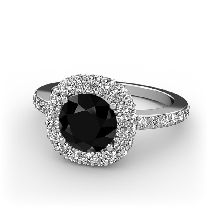 Siyah zirkon ve pırlanta 8 ayar beyaz altın yüzük (1.04 karat)