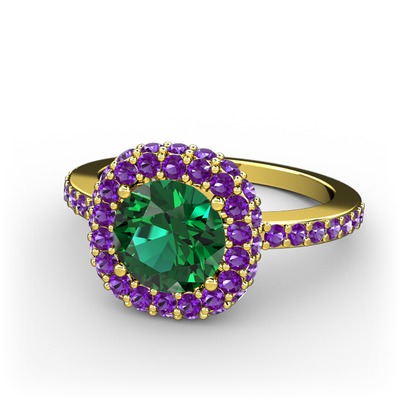 Yeşil kuvars ve ametist 14 ayar altın yüzük