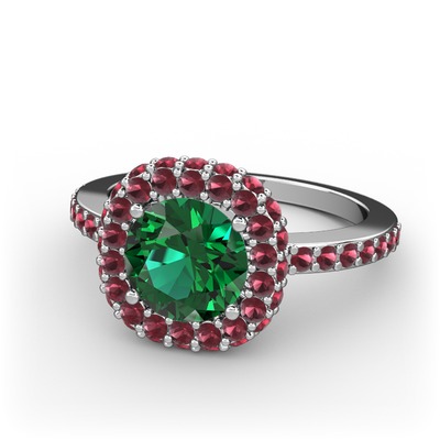 Yeşil kuvars ve kök yakut 8 ayar beyaz altın yüzük