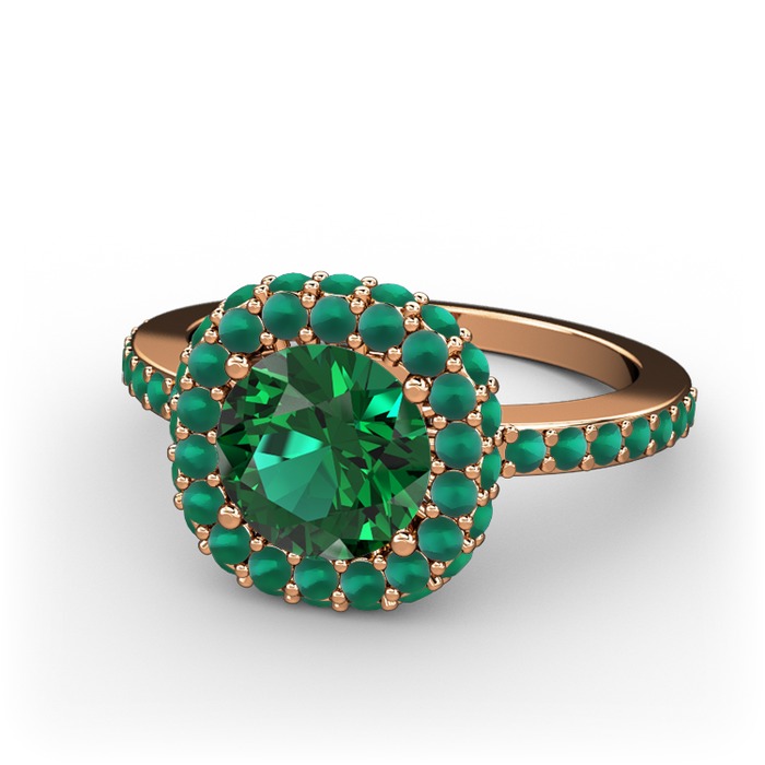 Yeşil kuvars ve kök zümrüt 18 ayar rose altın yüzük