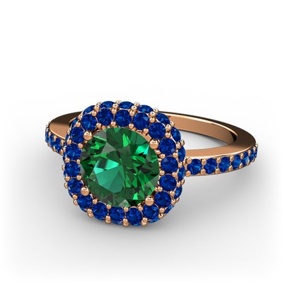 Yeşil kuvars ve lab safir 14 ayar rose altın yüzük