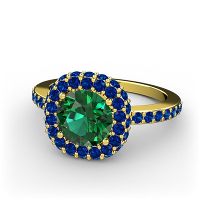 Yeşil kuvars ve lab safir 925 ayar altın kaplama gümüş yüzük