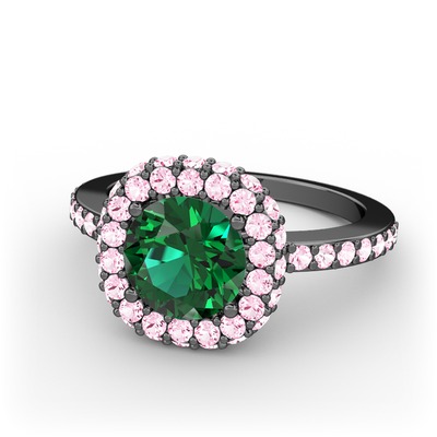 Yeşil kuvars ve pembe kuvars 925 ayar siyah rodyum kaplama gümüş yüzük
