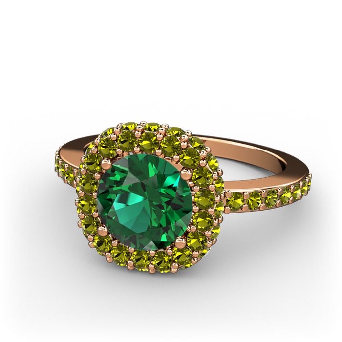 Yeşil kuvars ve peridot 14 ayar rose altın yüzük