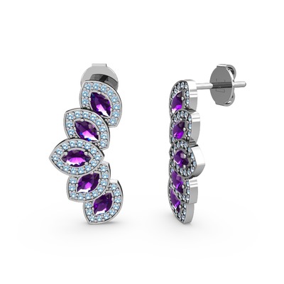 Akuamarin ve ametist 8 ayar beyaz altın küpe