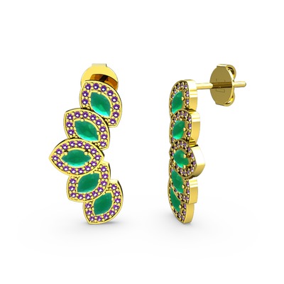 Ametist ve kök zümrüt 14 ayar altın küpe