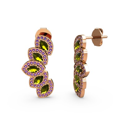 Ametist ve peridot 925 ayar rose altın kaplama gümüş küpe