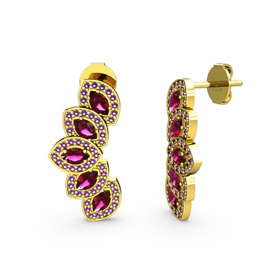 Ametist ve rodolit garnet 18 ayar altın küpe