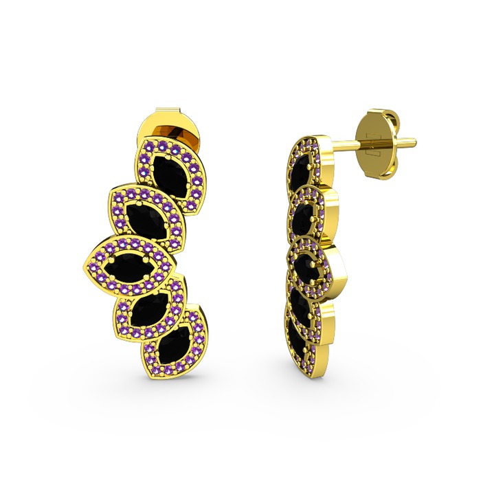 Ametist ve siyah zirkon 8 ayar altın küpe