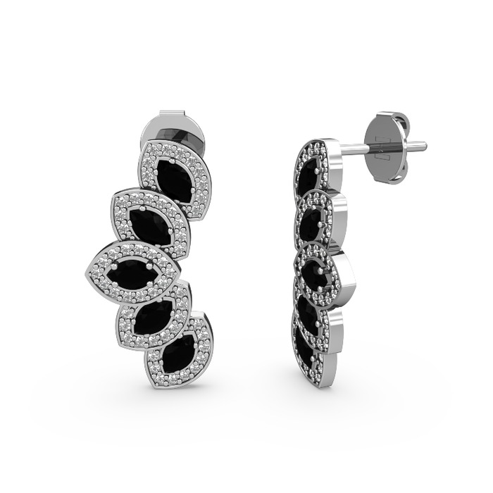 Beyaz zirkon ve siyah zirkon 14 ayar beyaz altın küpe